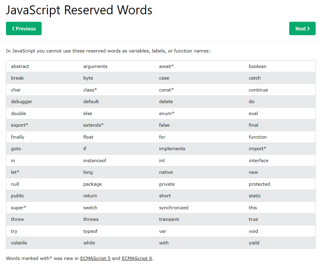예약어(Reserved Words)는 자바스크립트에 먼저 등록된 요소를 말한다.