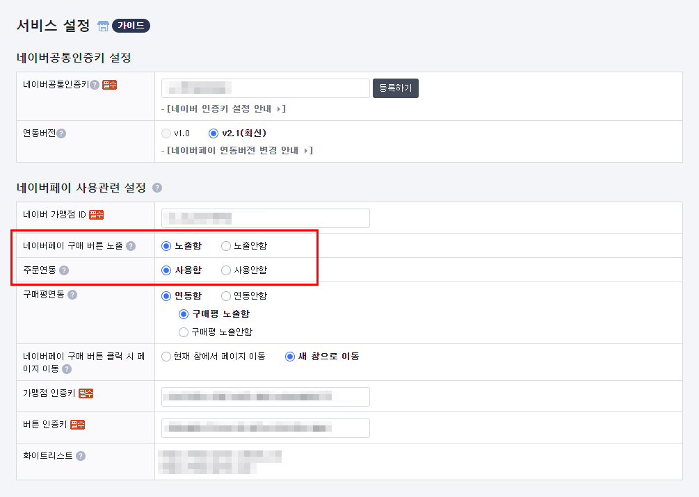 네이버페이 승인 받아, 공통인증키 연동도 하였는데 네이버 페이 버튼이 상품페이지와 장바구니에 노출되지 않는 경우 다음의 과정을 체크해보는 것이 좋다.