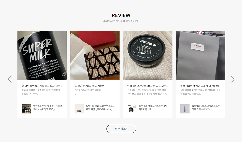 카페24 쇼핑몰 메인페이지에 상품 후기 게시판 최신글을 보여주기 위한 코드